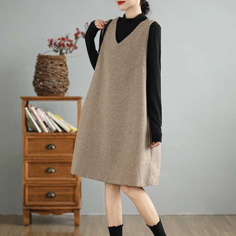 ワンピース サロペットワンピース 厚手 低身長 秋冬 膝丈 ジャンワンピース サロペットワンピース 厚手 低身長 秋冬 膝丈 ジャンパースカート ミディアム丈 ジャンパースカート Vネック ノースリーブワンピース オフィスカジュアル チュニックワンピース 体型カバー ジャンスカ