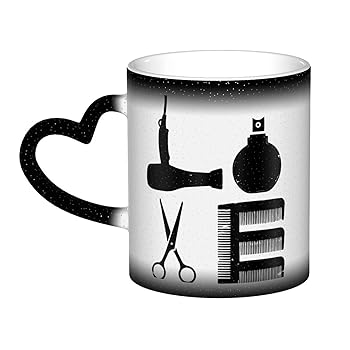 【中古】【未使用】コーヒーカップ おしゃれ マグカップ 散髪道具 ヘアドライヤー はさみ くし 陶器 やきもの 珈琲カップ 陶磁器変色カップ 美しい 無地 紅茶 男女