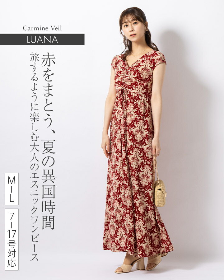 スタイルアップ 体系カバー 脚長効果 ノースリーブ フレア 細見え M L 春夏 マキシスカート ロングスカート ジャージー ダマスク柄 旅行 ビーチ デート カジュアルワンピース :ルアナ Yライン カーマインヴェール ◆opm7-090034 レディース ワンピ きれいめ 30代 40代 50代 着やせ 大人 上品 エレガント 大きいサイズ マキシワンピース マキシ丈ワンピース マキシワンピ Vネック 幾何学 リゾート マキシ丈 ロング丈 一分袖 半袖 春 夏 秋