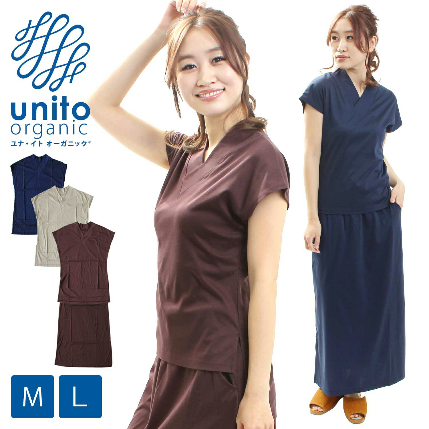 ワンマイルウェア オーガニックコットン 日本製ワンマイルウェア オーガニックコットン セットアップ M L サイズ 日本製 ルームウェア ホームウェア タウンウェア レディース 室内着 ネイビー ベージュ ワイン ワンピース オーガニック コットン 綿 GOTS ユナイト 母の日 敬老の日 ギフト インナー スカート パジャマ