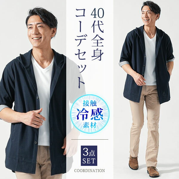 40代メンズ夏服全身3点コーデセット40代 メンズファッション 夏 夏コーデ メンズ ファッション パーカー 接触冷感 冷感 vネックtシャツ 半袖 5部袖パーカー 男性 5分袖 シューカット チノパン ブーツカット メンズパーカー 七分袖メンズ パーカーメンズ サマー 夏用パーカー 半袖tシャツ メンズファッション夏