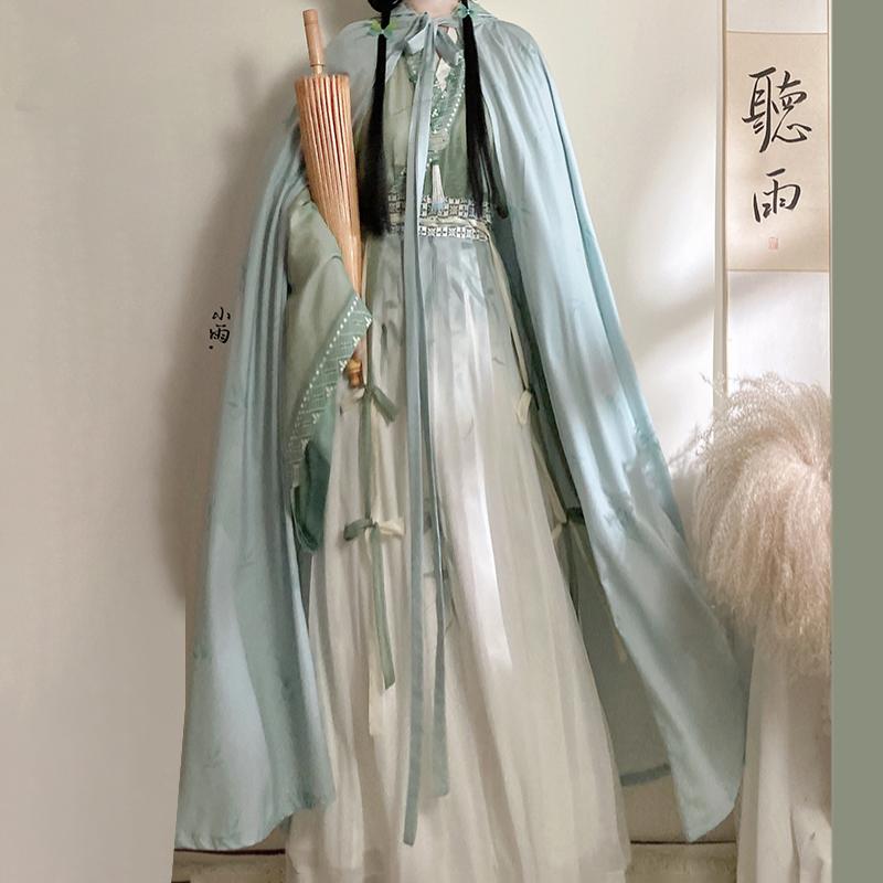 【予約販売5~12営業日での発送】唐装漢服 レディース 秋冬 中国風 伝統的 ロング丈 ケープ マント 羽織り プリント セットアップ プリーツスカート 舞台 パフォーマンス 演劇 撮影 衣装 エレガント