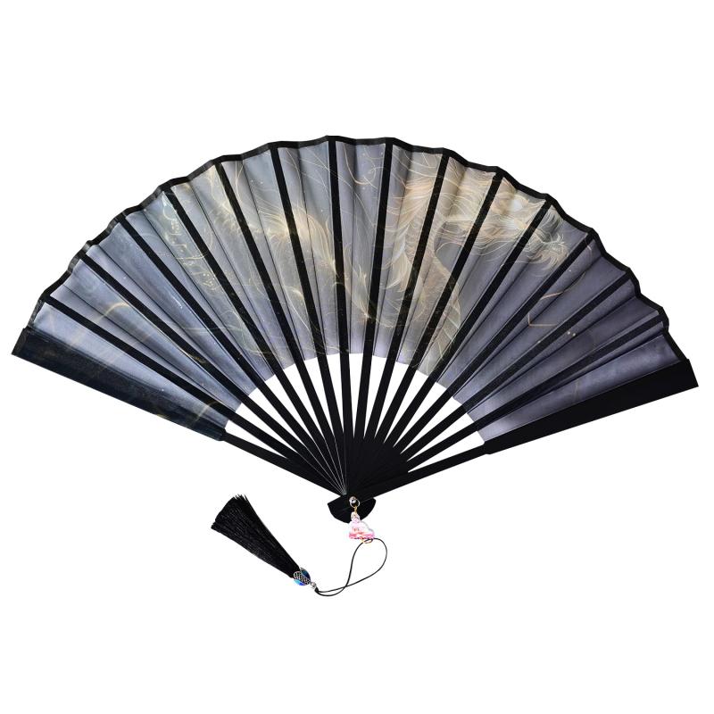【予約販売5~12営業日での発送】扇子 高級感 古風 折りたたみ式 扇 優雅な アートデザイン 中華風 定番スタイル 漢服 馬面スカート ダンス用 舞台小物 絹風 防水 耐久性 夏 黒