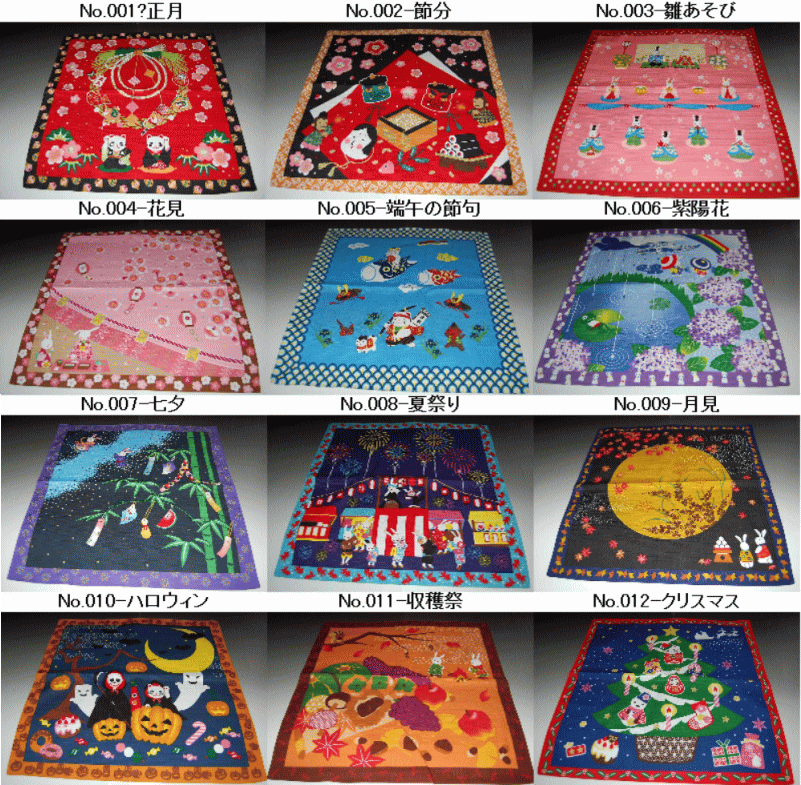 ※この風呂敷は、刺繍名入れのみ対応可能です。刺繍名入れを御希望の場合は、風呂敷と組み合わせて、買い物かごに入れ注文してください。※別ページが開きます 秋のタペストリー飾りにおすすめ!11月のインテリアを彩るタペストリーにしてください。 紅葉やいちょうも色づき うさぎ達が 栗 さつまいも かぼちゃ きのこ 柿 ぶどう りんごなど秋の味覚満喫中。50cmサイズの小風呂敷です。 タペストリーとして飾るなら組立式タペストリー棒スマート M チーフ用(約51.5cmまで)ブラックとセットでいかがでしょうか? 商品サイズ 約50cm巾 素材 綿100% 縫製 四方ミシン 日本製 【この風呂敷は中巾(約45cm)、尺三巾(約50cm、約48cm)サイズの風呂敷です】 風呂敷は、昔ながらの和風のデザインから、モダン、おしゃれ、かわいいものや、かっこいいもの、北欧風のものまで色々な柄が豊富にあります。 約45cm(中巾)のふろしきは、ふくさ代わりになります。ご祝儀袋も包めます。 約48cm、約50cm(尺三巾)のふろしきは、弁当用、お弁当を包むお弁当包みや、ランチクロスとして使えます。気軽に壁掛けやタペストリーとしても楽しめます。バンダナやハンカチ代わり、ティッシュケースカバーや小物入れカバーとしても使用できます。約45cm(中巾)、約50cm(尺三巾)のふろしきとも、プチギフトのラッピングにおすすめです。 風呂敷のサイズは、「巾(はば)」という単位で表します。風呂敷を広げた時の横の長さ(巾(はば))になります。風呂敷は厳密にいうと横と縦の長さが違います。風呂敷を広げると分かります。 風呂敷の端処理は、天地(二方)のみ縫われている「二方ミシン」と、四辺すべて縫われている「四方ミシン」と両方あります。風呂敷の仕上がりのサイズに合わせて織られた生地を使用する場合、両端がほつれないよう織られているため、天地(二方)のみ縫います。生地巾が大きい生地を使用する場合、仕上がるサイズに縦方向にもカットする為、両端もほつれてきますので、四辺とも縫います。但しポリエステル生地の場合は、ヒートカット(熱裁断)をし、両端がほつれることが無い為、天地(二方)のみ縫うことが多いです。どちらが正解ということではなく、生地の特性、サイズに合わせて無駄の無く加工します。これも風呂敷の特徴です。 2020年7月1日よりレジ袋の有料化が義務付けられました。使い捨てプラスチックによる海洋汚染の深刻化や、地球温暖化などの解決に向けたサスティナブルな取り組みの第一歩として、スーパーやコンビニのレジ袋の代わりに、コンパクトに折りたたみができ、何度も使えるエコバッグとして風呂敷を使ってみませんか?風呂敷なら、レジカゴにもフィットし、エコバッグにはあまり無いメンズ向きの粋な柄もあります。 風呂敷をバッグの形にしてみたり、風呂敷をバッグインバッグにするのもおすすめです。 風呂敷パッチンや風呂敷ハンド、風呂敷バンド、風呂敷ハンドル、風呂敷リング等の持ち手を使うと、簡単に風呂敷をバッグとしてお使いいただけます。(風呂敷バッグ) タペストリー棒を使うと、風呂敷がタペストリーに早がわり。 1歳の子供さんやお孫さんの誕生日のお祝いに、風呂敷で一升餅(一生餅)を背負いましょう。風呂敷をしずくバッグ型やリュックサック型に結んだ風呂敷バッグや風呂敷リュックでインスタ映えまちがえなし! 海外旅行やホームステイの海外の方へのお土産にも風呂敷は喜ばれます。かさ張らず荷物もコンパクトでおすすめです。 風呂敷専門店 京都ふろしき倶楽部では、風呂敷の包み方、風呂敷でのエコバッグの結び方、作り方を記載した京都ふろしき倶楽部オリジナル「ふろしきの使い方」の栞をプレゼントしています。安心して風呂敷生活を始めていただけます。※「ふろしきの使い方」の栞は、68cmサイズ以上の風呂敷を御購入のお客様のお荷物に1部同封させていただいております。2部以上ご希望の場合は、御購入いただいた風呂敷(68cmサイズ以上)の枚数を上限にプレゼントさせていただきます。ご注文の際、備考欄に必要枚数を記載してください。ラッピングを御希望の場合は、それぞれの包装の中に入れさせていただいております。 【風呂敷は様々なギフトシーンでお使いいただけます】 [内祝い・お返し] 出産内祝い 結婚内祝い 新築内祝い 快気祝い 快気内祝い 入学内祝い 入園内祝い 進学内祝い 結納返し 香典返し 引き出物 結婚式 引出物 法事 引出物 お礼 謝礼 御礼 お祝い返し 寿 [お祝い] 出産祝い 結婚祝い 成人祝い 卒業祝い 誕生祝い 初節句祝い 入学祝い 入園祝い 進学祝い 就職祝い 入社祝い 昇格祝い 昇進祝い 昇段祝い 新築祝い 改築祝い 増築祝い 開店祝い 移転祝い 退職祝い 還暦祝い 古希祝い 喜寿祝い 米寿祝い 退院祝い 昇格祝い 昇進祝い 栄転祝い 叙勲祝い 御祝い [その他ギフト 法人向け等] プレゼント ギフト お土産 手土産 プチギフト お見舞い 見舞い ご挨拶 引越しの挨拶 誕生日 バースデー お取り寄せ 開店祝い 開業祝い 周年記念品 記