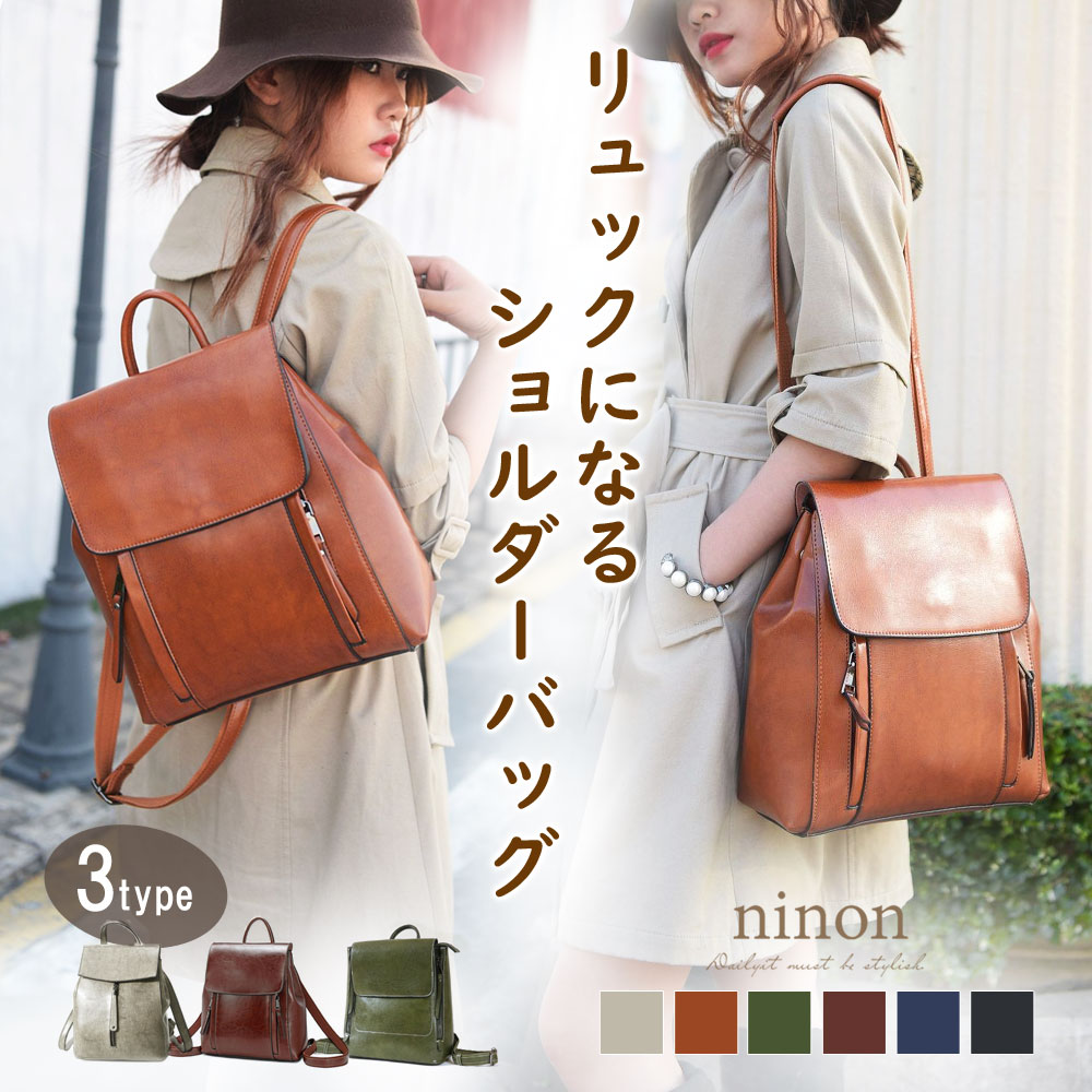 ninon ニノン プレゼント ギフトリュック レディース 通勤 ショルダーバッグ 斜めがけ 大人 ブランド 2way 縦型 合皮 きれいめ ペットボトル 小さめ リュックサック ビジネス バッグ 通学 女子 おしゃれ 黒 シンプル 旅行 2way ヴィーガンレザー カジュアル マザーズバッグ 3種類展開 ショルダー バック