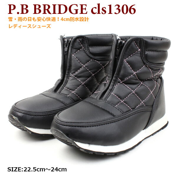 雨・雪の日も安心♪ 裏地にあたたかいボアを使用した防水ブーツ!22.5-24.5cmレディース ショートブーツ 4cm防水設計 P.B BRIDGE【CLS1306】ゆったり 3E 幅広 ファスナー ふかふか ボア あったか 軽量 軽い 滑らない EVA ラバー ゴム□cls1306□ まるほ