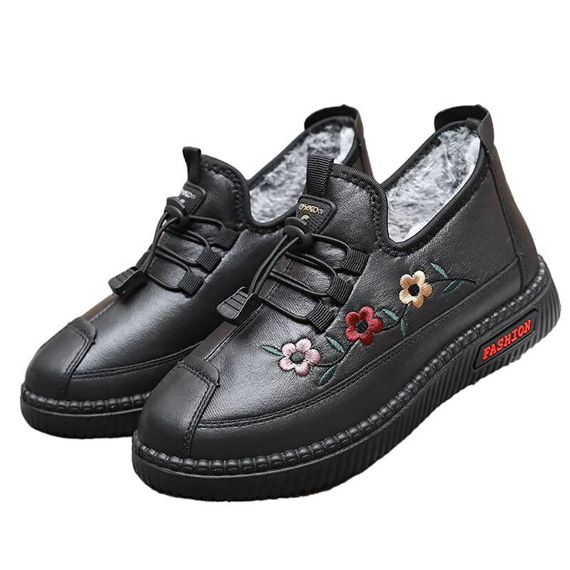 ママシューズ ショートブーツ レディース 刺繍 花柄 花 弾性バンド スノーシューズ ムートンブーツ 婦人 冬 雪靴 防寒靴 厚い 保温 裏ボア もこもこ 高齢者 老人 ギフト 50-70代 滑り止め