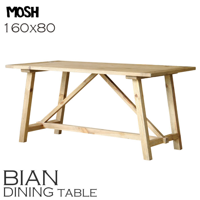 【時間指定不可+搬入路要確認】送料無料(一部地域を除く) 代引不可 アンティーク調 ヴィンテージ調 カフェ リビング テーブル 食卓 デスク 机《MOSH|モッシュ》ビアン ダイニングテーブル 160×80 長方形 テーブル単品 4人掛け 4人用 おしゃれ 北欧 シンプル ナチュラル 木製 古材 パイン無垢材 GART ガルト BIAN bian-dtable 23011801【開梱設置付き】【沖縄・離島配送不可】【B:北海道+東北 別途】