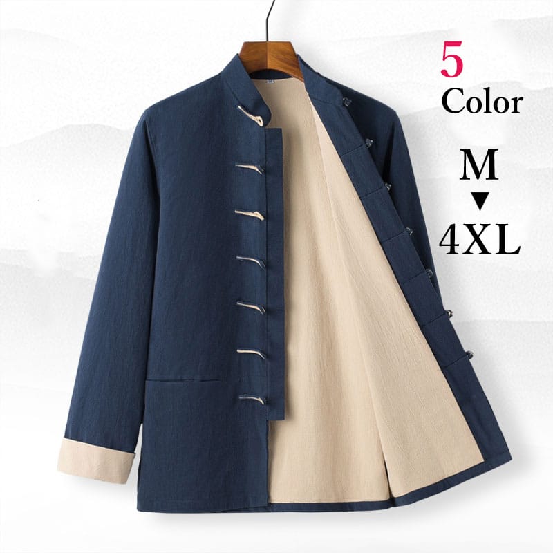 上質な綿麻を使用しチャイナジャケット!花釦という2色の紐で結われたボタンが特徴!チャイナ服 メンズ チャイナジャケット カンフー服 太極拳服 唐装 男性用 立ち襟 チャイナボタン 花ボタン 送料無料