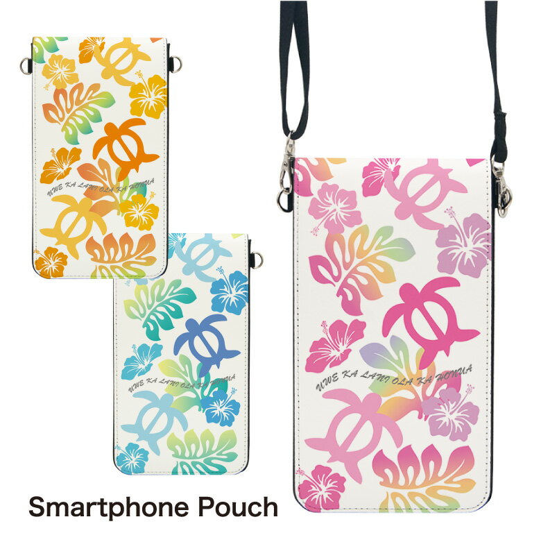 受注生産 スマホポーチ 可愛い オシャレ 便利 レディース(マラソン限定10%OFFクーポン配布予定) No8 パターンホヌ スマホポーチ スマートフォンポシェット ポシェット iPhone Android タッチ操作対応 ショルダーベルト 肩掛け 斜め掛け ポーチ 合皮 帆布 ジャケット パステルカラー カラフル 夏 海 トロピカル カメ ハイビスカス