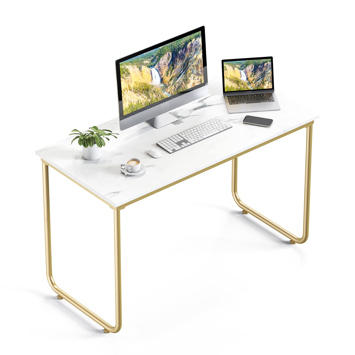 MONCOT 学習机 ダイニングテーブル パソコンデスク ワークデスク:化粧テーブル 大理石模様 オシャレ 高級 北欧風 木製天板 金属フレーム 頑丈 簡単組立 幅120×奥行き58×高さ76cm CP102-WH