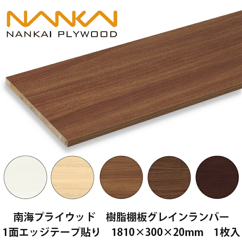 多彩なカラーと豊富なサイズラインナップで、設置場所や使用用途、収納ニーズに対応できます。南海プライウッド【樹脂棚板グレインランバー 1面エッジテープ貼り 1810×300×20mm 1枚入】NAIKAI 個人宅配送OK!