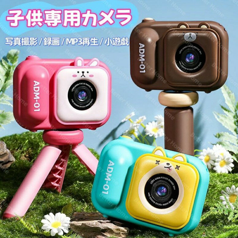 こちらのカメラは3歳から8歳の子供に向けて、特別に設計されています。 子供の好みに合わせて可愛くてデザイン・安全の素材を採用・180gの軽量タイプ・耐衝撃性に優れるキッズ用カメラです。 子供にとって最高のプレゼントです。 ※当社のキッズカメラは中国製造元メーカーまで出向き、一つ一つ製品のチェックし、製品のメニュー言語と説明書全て日本語で、見やすいです。 ■機能紹介: 1.写真 ・14種のフレーム付き ・フィルター効果あり ・分割画面モードあり ・自撮り機能搭載 2.ビデオ ・音声付きのビデオ撮り 3.ゲーム ・子供向け知育ゲーム 4.音楽 ・MP3プレーヤー ■セット内容: 1.デジタルカメラ本体 2.自撮り棒/三脚 3.USB充電ケーブル 4.32GB Class10 microSDカード(本体に挿入済み) 5.カードリーダー 6.ストラップ 7.日本語取扱説明書 * 本製品を使用する前必ず親御様が説明書を確認して頂き内容を把握の上、お子様に使用方法のご指導をお願い致します。 * 本製品は「トイカメラ」です。お子様がカメラの撮影を楽しんでいただくカメラ入門商品ですので、「画質やキレイさ」にこだわる方は一般的なデジタルカメラをおすすめします。 * 商品は緩衝材を使って、段ボールで梱包します。輸送で箱が潰れた場合がございます。お気になる方はご購入をお控えください。 * 商品の品質については万全を期しておりますが、万一商品が破損または不良品などがございましたら、ご購入日から30日間交換対応させていただきます。