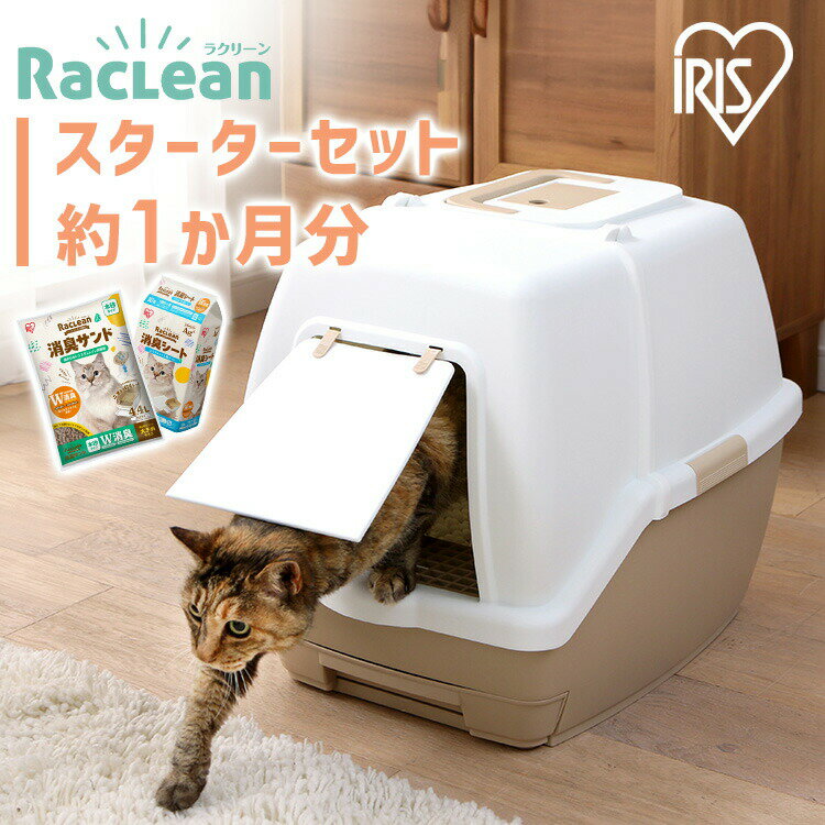 【ラクリーンスターターセット】 ラクリーンセットは「フルカバータイプシステム猫トイレ」+「ラクリーン 消臭サンド」+「ラクリーン 消臭シート」の組み合わせで気になるにおいを抑える猫用システムトイレスターターセットです。猫トイレ本体内部がスノコ状になっているので、おしっこが溜まることなく下のトレーに落ちる仕組みになっています。フルカバータイプで臭いも広がりにくい!銀イオン配合で消臭効果があります。上部が脱臭サンド・タブレット、下部が脱臭シートを入れる二重の引き出し式トレーで、それぞれの取替えが楽に行えます。トイレスコップつき。【消臭サンド】◆W消臭(抗菌成分配合)天然針葉樹+独自の消臭成分気になるニオイを消臭!◆ぬれても長時間、形状をキープするからお手入れも簡単◆オシッコ汚れを残さず通過しニオいにくい!◆約1か月交換不要**標準的な成猫1匹で使用した場合の目安です。【消臭シート】◆W消臭クエン酸+独自の消臭成分気になるおしっこ臭を強力消臭!*当社比◆おしっこの色が確認しやすい白色シート◆消臭シートは約1週間交換不要**愛猫1匹で使用した場合の目安です。●トイレサイズ(cm)幅約40.5×奥行き約52.5×高さ約42.5●材質ポリプロピレン、ABS樹脂、ポリエチレン●セット内容トイレ本体(スコップ付き)消臭サンド:木砂(大きめ)2.2L消臭シート:通常用シート4枚 【フード付きトイレ本体のみ】 フルカバータイプのシステム猫トイレ。猫トイレ本体内部がスノコ状になっているので、おしっこが溜まることなく下のトレーに落ちる仕組みになっています。フルカバータイプで臭いも広がりにくい!銀イオン配合で消臭効果があります。上部が脱臭サンド・タブレット、下部が脱臭シートを入れる二重の引き出し式トレーで、それぞれの取替えが楽に行えます。トイレスコップつき。●トイレサイズ(cm)幅約40.5×奥行き約52.5×高さ約42.5●材質ポリプロピレン、ABS樹脂、ポリエチレン●セット内容トイレ本体・スコップ ※予告なくリニューアルとなる場合があり、こちらに掲載の情報がパッケージデザイン含め実際の商品と一部異なる場合がございます。予めご了承の上ご注文を頂きますようお願い致します。 最強翌日配送対象商品に関するご案内 最強翌日配送対象商品・対象地域に該当する場合は最強翌日配送マークがご注文カゴ近くに表示されます。 最強翌日配送可能なお支払方法は【クレジットカード、代金引換、全額ポイント支払い】のみとなります。 下記の場合は最強翌日配送対象外となります。 ・15点以上ご購入いただいた場合 ・時間指定がある場合 ・ご注文時備考欄にご記入がある場合 ・決済処理にお時間を頂戴する場合 ・郵便番号や住所に誤りがある場合 ・最強翌日配送対象外の商品とご一緒にご注文いただいた場合 ・お届け先住所文字数が40文字以上の場合 関連キーワード(本商品の説明ではありません)母の日 父の日 敬老の日 こどもの日 クリスマス バレンタイン ホワイトデー ハロウィン お正月 成人の日 成人式 記念日 誕生日 卒業式 入学式 お歳暮 お中元 春 夏 秋 冬 梅雨 節分 ひな祭り 七夕 十五夜 初詣 年越し 夏祭り 花火大会 結婚祝い 内祝い 出産祝い 快気祝い 還暦祝い 古希 喜寿 傘寿 米寿 卒寿 白寿 百寿 新築祝い 引っ越し祝い 開店祝い 開業祝い 就職祝い 昇進祝い 合格祝い 銀婚式 金婚式 七五三 長寿祝い 御礼 お母さん お父さん 義母 義父 祖父 祖母 おばあちゃん おじいちゃん 娘 息子 彼氏 彼女 恋人 友達 上司 先輩 後輩 同僚 キッズ 子供 幼児 ベビー 赤ちゃん 育児 学生 社会人 シニア 10代 20代 30代 40代 50代 60代 70代 80代 90代 一人暮らし 単身赴任 主婦 主夫 新生活 家族暮らし 子育て 旅行 トラベル ライブ ホームパーティ ビジネス 法人 ギフト プレゼント