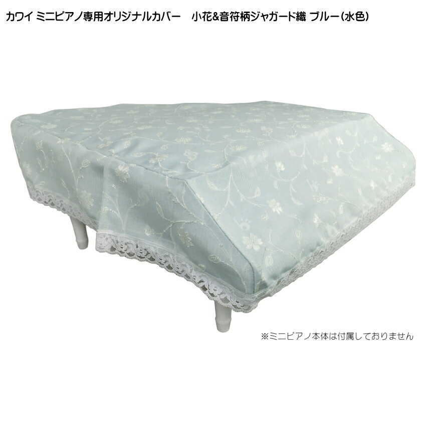 当店オリジナル!ホコリやキズを防ぐミニピアノ専用カバー※ミニピアノ本体は付属しておりませんカワイ ミニピアノ専用 オリジナルカバー 小花&音符柄ジャガード織 ブルー(水色) 河合楽器 グランドピアノ型 32鍵盤対応【メール便送料無料】
