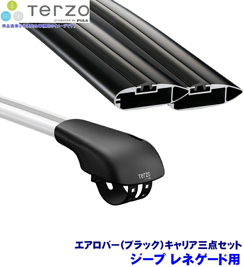 車体に美しく融合し、精悍な印象をもたらすブラックカラーのエアロバーキャリアセット。車両一台分。【10/10限定】最大3,000円OFFクーポン配布!TERZO テルッツオ テルッツォ ジープ レネゲード(H27.9~)用ルーフキャリア フット+エアロバー(ブラック)三点セット EF103A&EB92AB&EB92AB