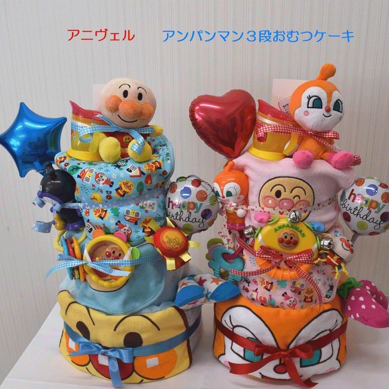 人気のアンパンマンのおむつケーキです!! ご出産祝いにもピッタリ♪ 全てアンパンマンの商品のおむつケーキです!! 【おむつケーキのセット内容】 ○スタイ2枚セット ○選べるおもちゃ1個 ○ラトル1つ(アンパンマンかバイキンマンから1つランダムになります) ○アンパンマンのコップ1個です。(蓋なしのコップに7枚画像へ変更になります) ○アンパンマン人形、ドキンちゃん、バイキンマン(押すとキューと鳴ります。)1つ 押すと音が鳴ります。 ○アンパンマンタオルかドキンちゃんタオル1枚 ○バルーン2個(ランダムになります。) ○靴下1足(ランダムになります。) ○アンパンマンのぬいぐるみかドキンちゃん 【おむつについて】 おむつブランド:パンパース おむつサイズ :S(4~8kg) おむつ枚数 :50枚 ケーキサイズ :直径約25cm×高さ約45cm 無料のメッセージカードもあり、 ご希望のメッセージを入れることが可能です。 ※こちらの商品はボックスがイラストボックス(無料)に なりますので、ご了承ください。 ※有料(+220円)にて袋もあります。 ※双子ちゃん用に送りたいというお客様は 備考欄に記載いただけましたら、対応させて頂きます。(別途追加料金が発生します。) または、当店に直接お問い合わせください。アンパンマン 3段おむつケーキ♪