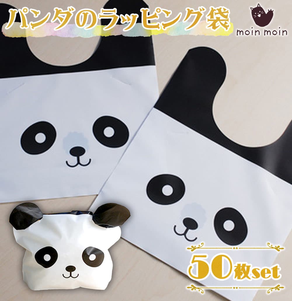 ギフト ラッピング プレゼントボックス ギフト梱包 ギフトバッグ ギフト包装 包装 箱 ラッピング 資材 ラッピングキット セット キット プレゼント 贈り物 ギフト 友達最短当日出荷◆ラッピング パンダ 型 50枚セット/ビニール 袋/15(11)×18cm/白黒 モノクロ フェイス かわいい