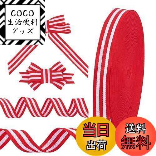 【送料無料】PH PandaHall ストライプリボン 幅20mm×45m メダルバンド 手芸 服飾 ラッピング ちょう結び リボン ハンドメイド DIY プレゼント ギフト包装用 装飾DIYクラフトソーイング 紅白リボン