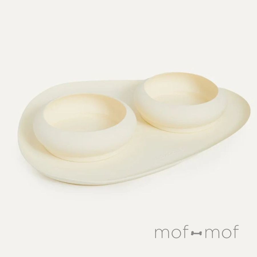 柔らかいシリコン製のボウル2つとマット1枚のセット。これさえあれば家でもお出かけ先でもいつでも清潔に食事できます。max-bone バブルボウル&マット セット クリーム マックスボーン 餌台 北欧 ハイクオリティフードボウル フードマット シリコン 脱プラスチック おしゃれ かわいい 小型犬 中型犬 犬 ジャケット モフモフ