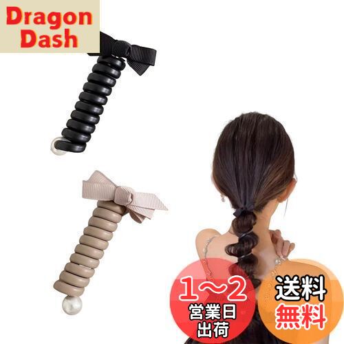 【送料無料】ZHEJIA コイルポニー (2本セット) コイルアップ ワイヤーポニー スパイラルヘアゴム ヘアアクセサリー 調節可能で 韓国風 人気 蝶結び 可愛い おしゃれ 跡がつかない アレンジ自在 全年使用 入学式 結婚式 卒業式 デート (ブラック+ピンク)