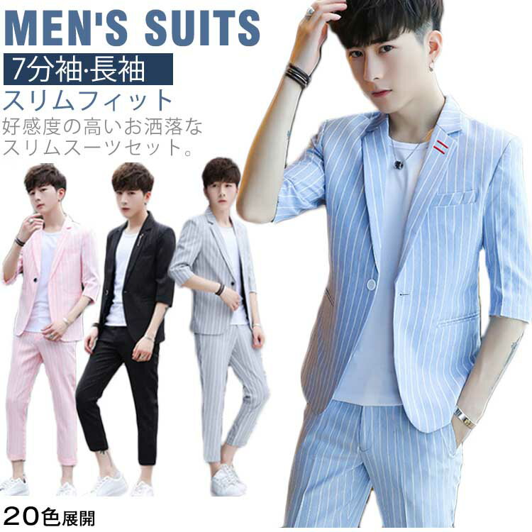 ジャケット ズボン 上下セット 結婚式スーツ 無地 男性 セットアップ 大きいサイズ 出張 パーティー 二次会 司会 入社式 撮影 忘年会 披露宴 新生活 冠婚葬祭 新郎 父の日 息子 七五三送料無料 フォーマルスーツ 男性スーツ ストライプ スーツセット 夏服 ビジネススーツ メンズスーツ カジュアルスーツ 薄手 七分袖 五分袖 一つボダン制服 スリピース スタイリッシュ 2点ジャケット+ズボン 通勤 紳士服 事務服 スリム スキニー新作 大きいサイズ 七五三 息子