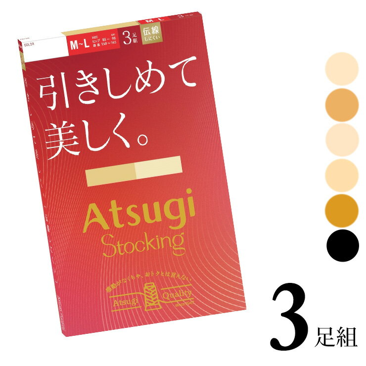 ■商品名 レディース アツギ ストッキング 引きしめて美しく FP12113P 3足組 ■特徴 ATSUGI STOCKING(アツギストッキング) 感動がなくちゃおトクとは言えない 糸から考えるアツギだけのクオリティ。 キュッと引きしめてスラリとした美しい脚へ。 ●なめらかな肌触り 横シマが出にくくなめらかな肌触りが特徴のゾッキ編みストッキング。 気になるくすみや色むらをカバーして、キメの整った美しい脚を演出します。 ●快適なはき心地 ウエストテープがよく伸びておなかに食い込みにくい。 締め付け感を軽減することで快適なはき心地を実現。 衣類がまとわりつきにくい静電気防止加工も施しました。 さらに、つま先に切り替えがある補強トウで強度が高く、爪のひっかかりによる伝線がしづらい。 ※ 静電気防止効果は、洗濯により徐々に低下します。 ●洗い替えに便利な3足組 ●足首10hPa ●伝線しにくい ●快適ウエストテープ ●補強トウ ●静電気防止加工 ●バックマーク付 ■サイズ S-M(身長:145-160cm ヒップ:80-93cm) M-L(身長:150-160cm、ヒップ:85-98cm) L-LL(身長:155-170cm、ヒップ:90-103cm) ■配送 ※ポスト投函対応商品です。 (2セットまで同梱可能) ■ご注意 ※ポスト投函でお届けの場合、日時指定はご利用いただけません。 ※合計4セットまではポスト投函でお届けいたします。 ※PC・スマートフォンのメール設定により、当店からのメールが届かない場合がございます。迷惑メール設定・受信設定等をご確認ください。 ※画面上と実物では多少色具合が異なって見える場合もございます。ご了承ください。