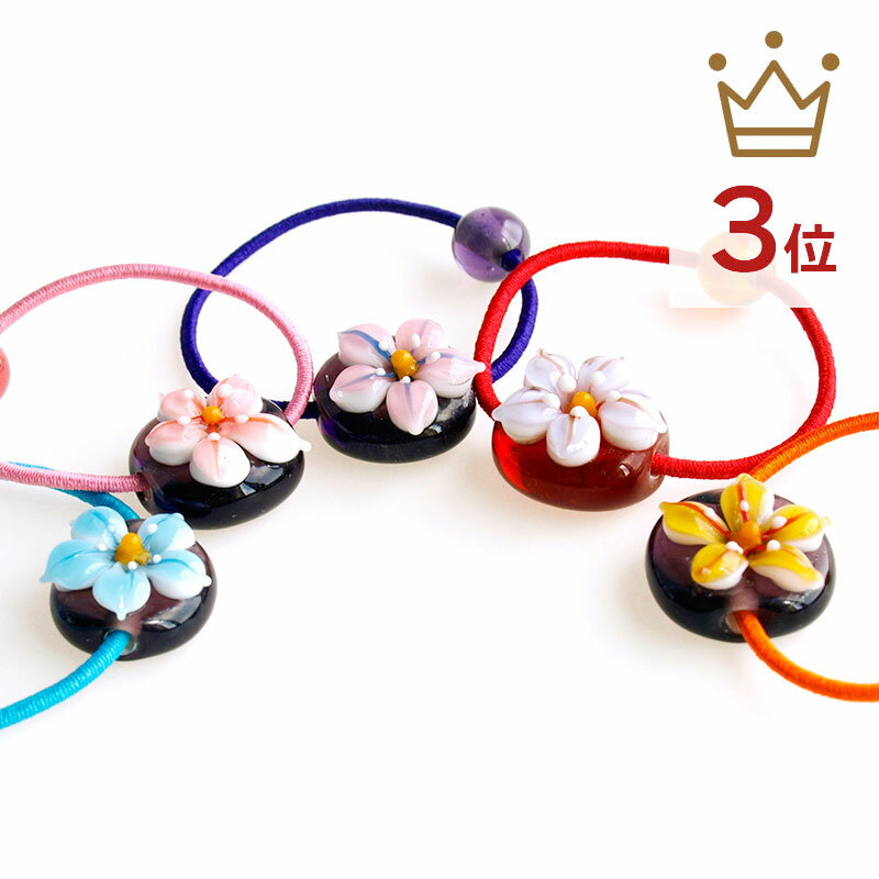 冬ギフトに親子やカップルでお揃いのペア小物/癒しグッズをプレゼント/転勤や異動・退職・還暦祝いのプチギフト・贈り物/ハンドメイドアクセサリー・トンボ玉【お得な2個セット】【Flora キッズ ヘアゴム】とんぼ玉 ヘアゴム 大人っぽい 冬 ガラス かわいい 花 ハンドメイド キッズ 大人 女性 花 ヘアアクセサリー 着物 髪飾り 成人式 卒業式