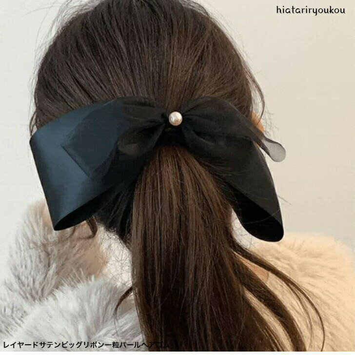 かんたん上品可愛いレイヤードサテンビッグリボンヘアゴム 送料無料 可愛い 大人っぽい レディース ヘアアクセサリー かわいい おしゃれ プレゼント 30代 40代 50代 大き目 発表会 入学式 ブラック クラッシュ 卒業式 パーティ 上品 清楚