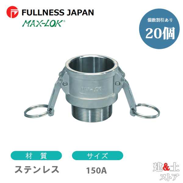 全品業界最安値を目指します!【20個セット】レバーカップリング 6インチ 150A MAX-B オスネジ型カプラー(メス×オスネジ) ステンレス製 マックスロック カムロック