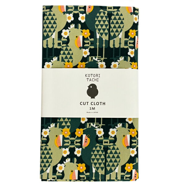 鮮やかなカットクロス(生地)シリーズカット生地 オックス【1m】 花輪とハシビロコウ グリーン ◆ゆうパケット対応◆ ことり 小鳥 雑貨 グッズ 110×100cm 日本製 綿100% 普通地 平織 染布 切りっぱなし イラスト かわいい おしゃれ 和風 花柄 布 カットクロス はぎれ 手芸 和雑貨 インテリア【KOTORITACHI】