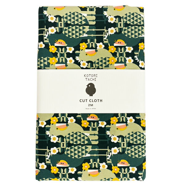 鮮やかなカットクロス(生地)シリーズカット生地 オックス【2m】 花輪とハシビロコウ グリーン ◆ゆうパケット対応◆ ことり 小鳥 雑貨 グッズ 110×200cm 日本製 綿100% 普通地 平織 染布 切りっぱなし イラスト かわいい おしゃれ 和風 花柄 布 カットクロス はぎれ 手芸 和雑貨 インテリア【KOTORITACHI】