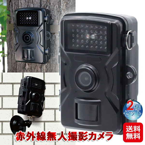 夜間の自動撮影が可能!人や動物をセンサーが感知!【送料無料/ポイント 2倍】数量限定価格【赤外線無人撮影カメラ(SDカード32GB付き)(2個セット)】【送料無料】【ポイント 2倍】防犯カメラ 録画機能付き 赤外線 壁 ベルト 屋外 家庭用 持ち運び トレイルカメラ 自宅 監視 カメラ 人感センサー ファミラ dap