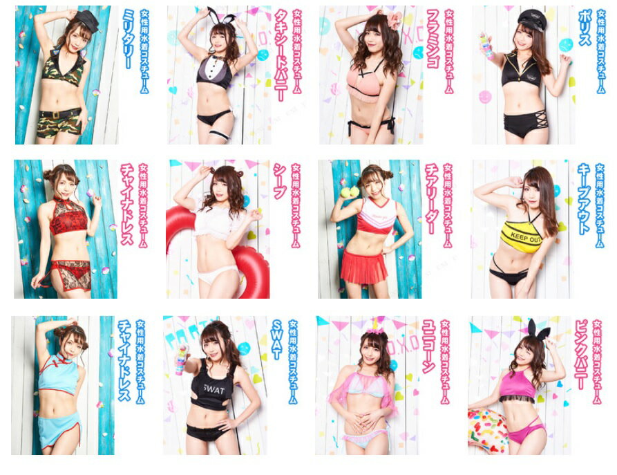 SNS映え間違いなし!Coswim コスプレ 水着(スワット/ポリス/チアリーダー/ピンクバニー/キープアウト/ユニコーン/シープ/ミニタリー/チャイナドレス/フラミンゴ/タキシードバニー/チャイナドレス)