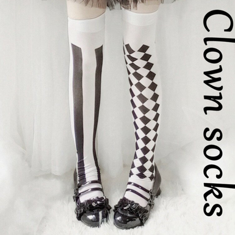 ハロウィンシーズン殺到!スカートにかけないソックス ストッキング ニーハイ オーバーニー ピエロ アリス【スーパーSALE半額】ハロウィンコスチューム小物ストッキングニーハイソックスオーバーニーソックスピエロアリスクラウンアシンメトリ左右非対称舞台演出イベント祭り学園祭ハロウィンパーティー個性?