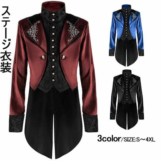 【送料無料】ハロウィン コスプレ 衣装 メンズ 中世 ヨーロッパ 王子様 貴族 仮装 長袖 テーラード ジャケット 舞台衣装 ロング丈 レトロコート 文化祭 忘年会 ステージダンス衣装燕尾服 メンズ タキシード 舞台ステージ衣装 テーラード ジャケット 中世 ヨーロッパ 王子様 仮装 マジシャン 魔術師 マジック ハロウィン クリスマス コスプレ衣装 司会者 舞台演出服 男性用礼服 レトロ イペント 学園祭 文化祭 忘年会 撮影 演劇 黒 青 赤 S M L XL 2XL 3XL