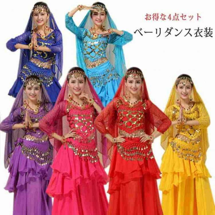 ベリーダンス 4点セット ダンス衣装 ヒップスカーフ ベリーダンス 衣装 ヒップカバー 腰巻き ダンス アクセサリー【早い者勝ち★300円Offクーポン】ベリーダンス 衣装ダンス衣装コスプレ2タイプ 6色ベリーダンス衣装4点セット ハロウィン衣装 ハロウィン コスプレ ヒップスカーフベールスカートコスチューム仮装