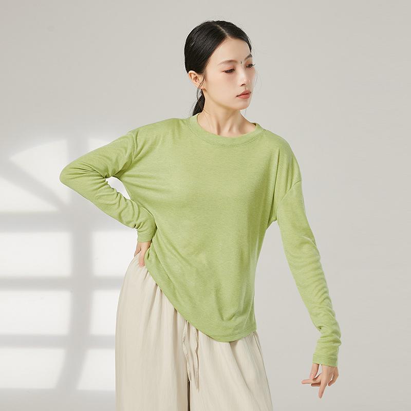 ダンス 練習着 トップス 大人 レディース 春秋 長袖 ラウンドネック プルオーバー シアー 背中開き 薄手 通気 ゆったり 吸湿 ソフト ジャズ モダン 衣装 シンプル カジュアル 無地 黒 白 グレー