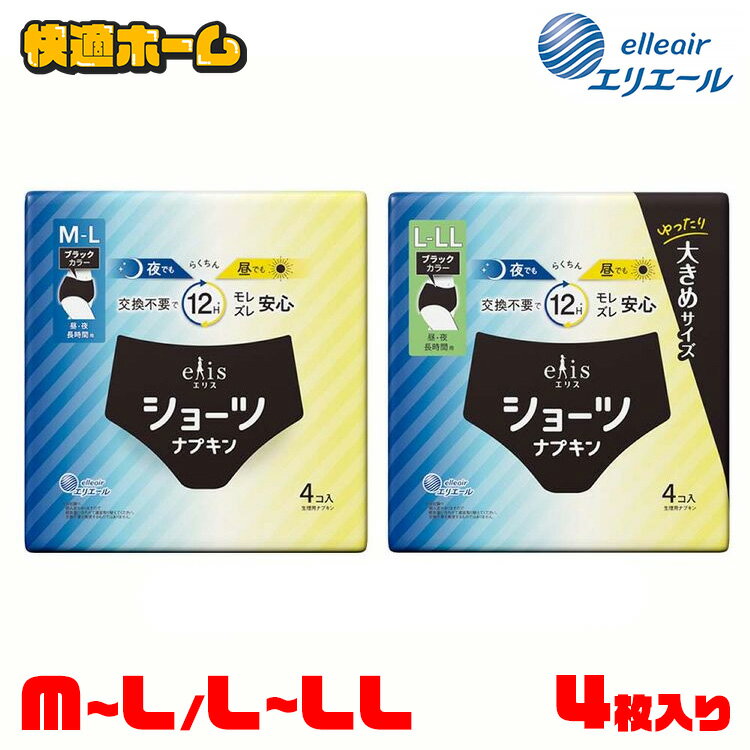 elis 大王製紙 生理用パンツ 吸水ショーツ 生理用ナプキン 夜用 長時間用 履くタイプ ブラック 薄型 エリス【履くタイプで楽ちん】 ナプキン 生理用パンツ 吸水ケア 生理 ナプキン エリスショーツ 昼・夜 長時間用 ブラックカラー4枚 elis 大王製紙 吸水ショーツ 生理用ナプキン 夜用 長時間用 ブラック 薄型 エリス M~L L~LL