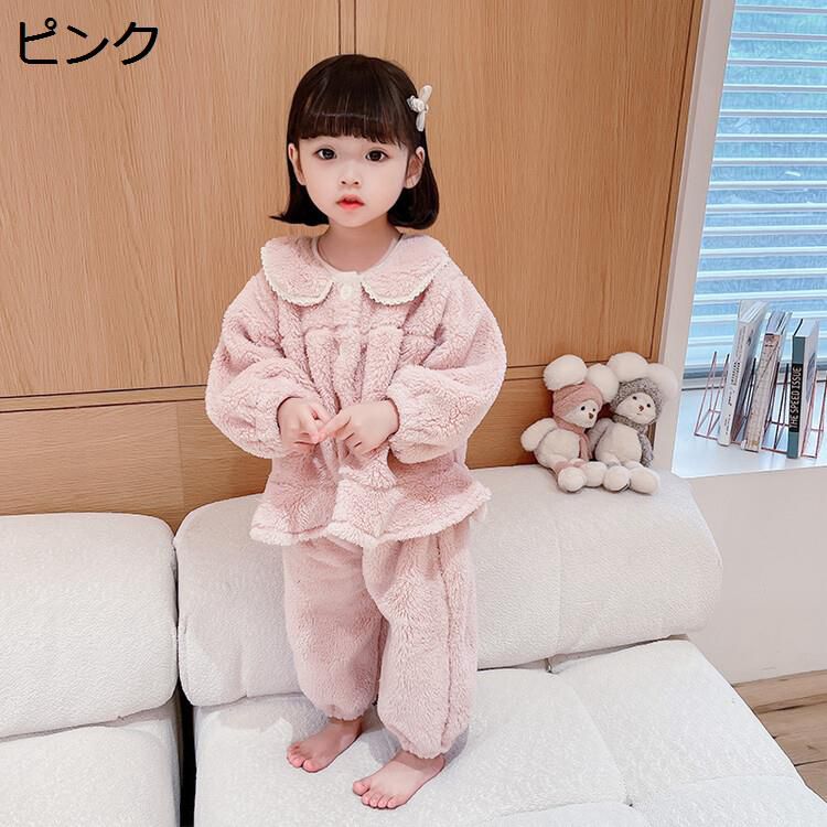 【20%OFFクーポン~】ルームウェア 子供 春秋冬 襟付き 寝間着 ガールズ 女の子 フランネル 長袖 上下セット 前開き トップス+ズボン ウェストゴム 防寒パジャマ 暖かい かわいい もこもこ 肌に優しい ふわふわ 部屋着 ナイトウェア