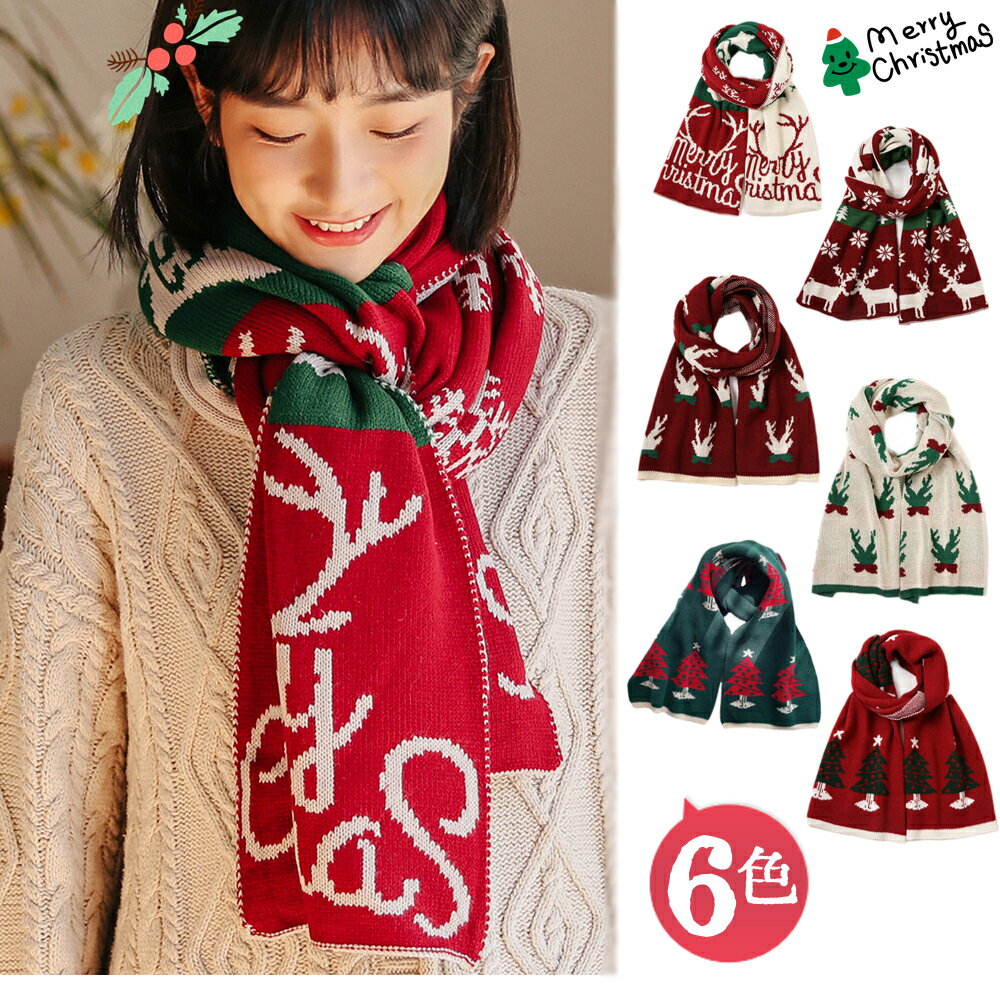 【送料無料】Merry christmas~お洒落 マフラー 180cmクリスマス ニット マフラー ショール レディース 肩掛け 秋冬用 防寒 おしゃれ アクセサリー コンビネーション ジュニア 大人 恋人 男女 グリーン レッド クリスマスツリー 雪花 トナカイ柄 プレゼント