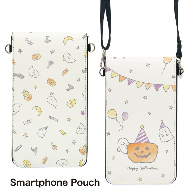 受注生産 スマホポーチ 可愛い オシャレ 便利 レディースNo35 Happy Halloween スマホポーチ スマートフォンポシェット ポシェット iPhone Android タッチ操作対応 ショルダーベルト 肩掛け 斜め掛け ポーチ 合皮 帆布 ジャケット
