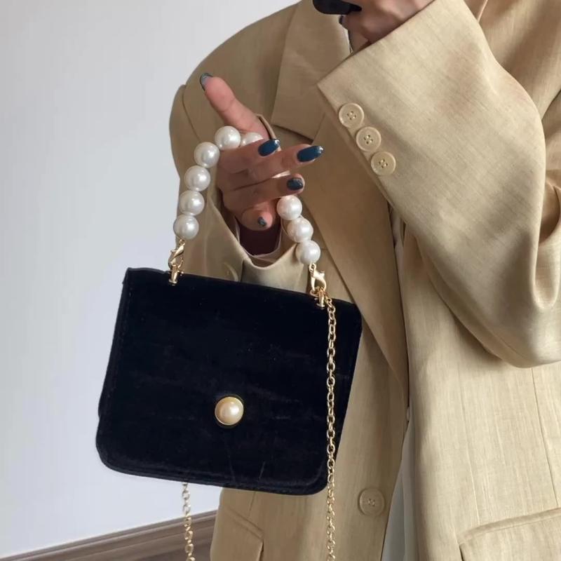 【予約販売5~10営業日での発送】レディースバッグ ブラック 春夏 秋 冬 ショルダーバッグ 高級 トートバッグ パール おしゃれ かわいい かばん 鞄 PUレザー 黒 バッグ ウエストポーチ マグネットバックル レディース チェーン 結婚式 女子会 ハンドバッグ