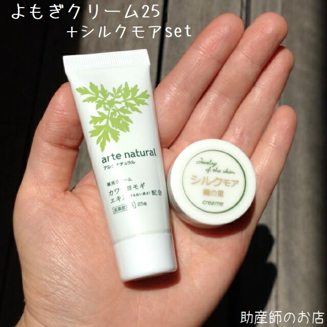 お肌の敏感な方や赤ちゃんのあせも・湿疹・オムツかぶれ等のスキンケアに好適のよもぎクリーム(カワラヨモギ配合-ヨモギクリーム)マスク荒れに! 蓬クリーム 25g (アルテナチュラル)+シルクモア 5mlセット シルクモア繭の里 送料無料 医薬部外品 シルク クリーム 送料無料 母乳育児 スムーズに 授乳で傷ついた乳首やよもぎクリーム 妊婦 妊娠お祝い 出産祝い 日本製 低刺激