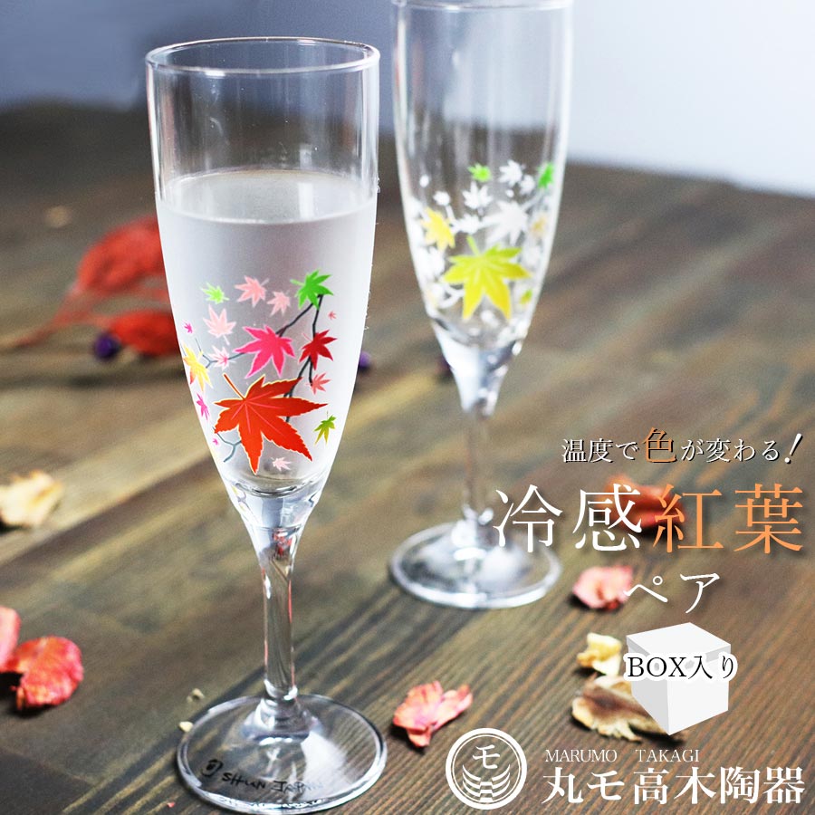 温度で色が変わる不思議なグラス シャンパングラス 2個セット 箱入りでギフト・プレゼントにも◎【送料無料】丸モ高木 ペアグラス ギフト【冷感紅葉 シャンパングラス ペアセット】色が変わる ガラス 正規品 日本 おしゃれ 来客用 乾杯 酒器 ワイン 記念 お祝い【丸モ高木陶器】