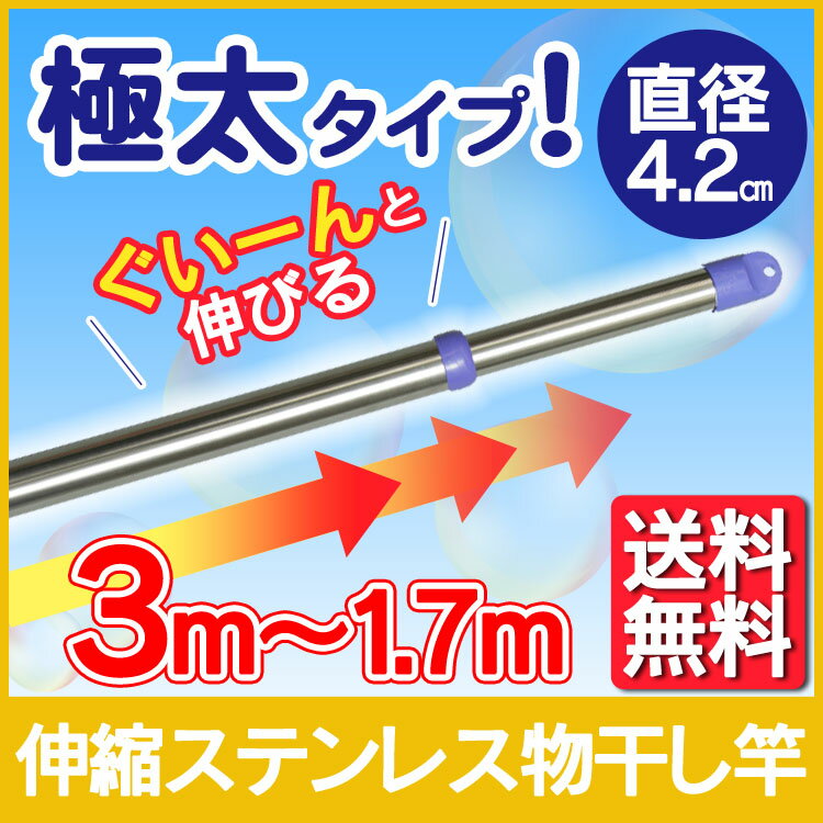 \税込み3,980円以上で送料無料/物干し 竿 ハンガーラック ステンレス 長さ170~300×直径4.2cm ステンレス 極太タイプ SU-300F 伸縮タイプ 屋外 竿 タオル バスタオル ふとん干し 物干し台用 洗濯用品 伸縮 多機能 おしゃれ ベランダ オールステンレス 軽い