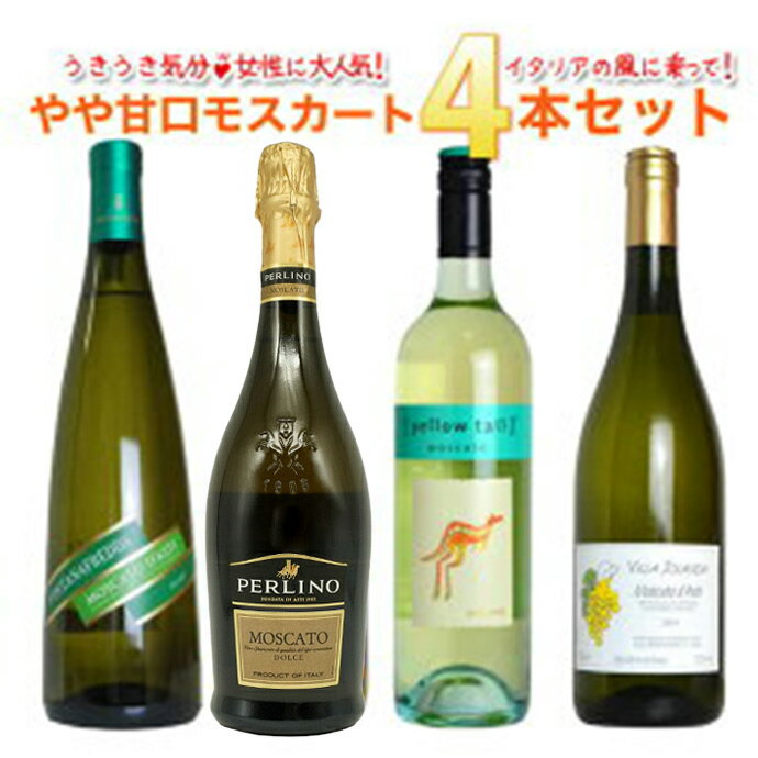 ショップ オブ ザ イヤー 10年連続受賞店舗イタリアの風に乗って!!うきうき気分♪♪女性に大人気やや甘口モスカート4本セット! ワインセット
