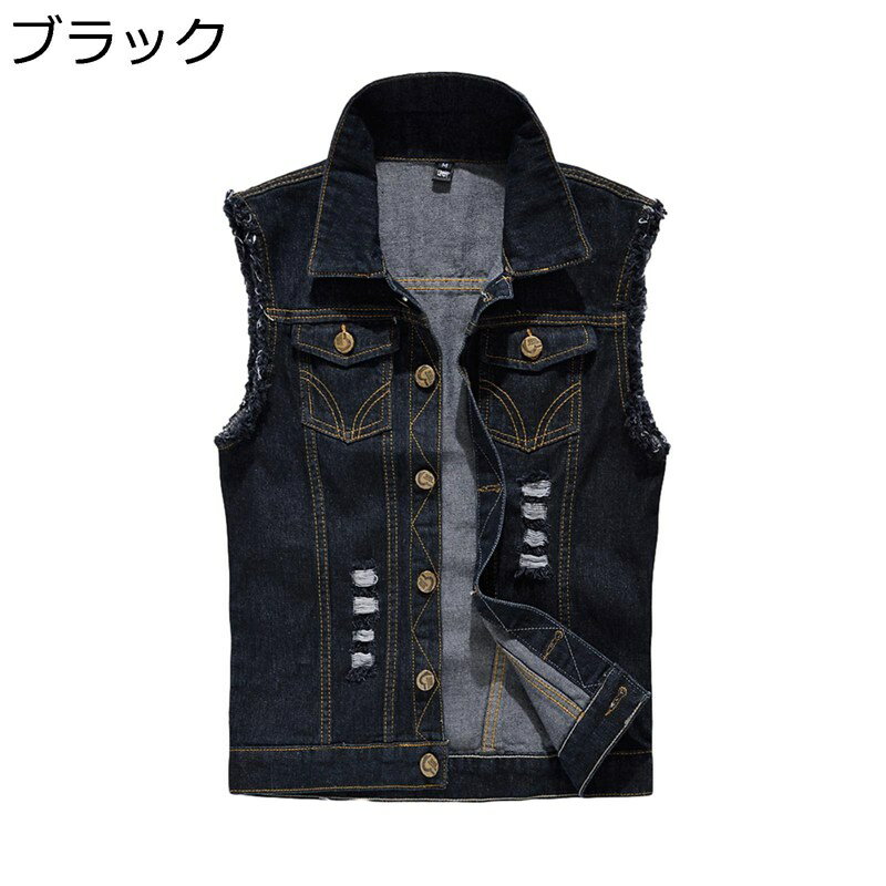 デニム ベスト メンズ チョッキ レジ ダメージ Gジャン ジージャン レイヤード ノースリーブジャケット ヒップホップ ライダース 通気 薄い 上着 コーディネート 軽い 春夏秋用 大きいサイズ