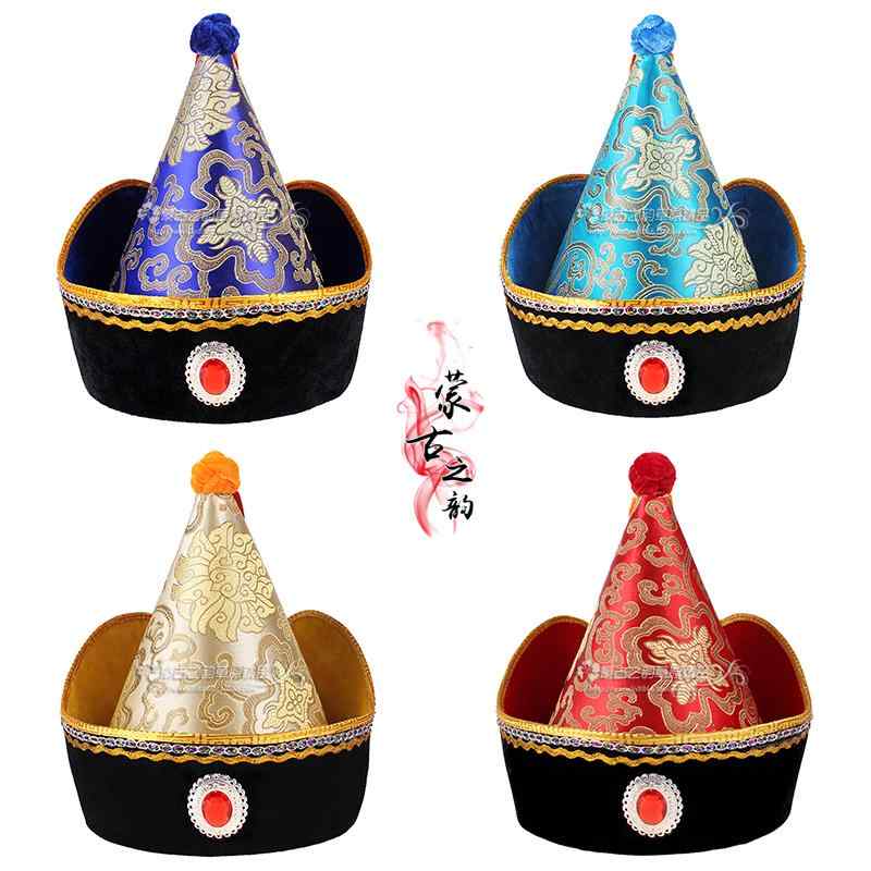 民族 衣装 かわいい 男性 帽子 メンズ モンゴル ダンス 踊り 頭 飾り 少数 アクセサリー とんがり パフォーマンス ステージ 舞台 青 赤 金