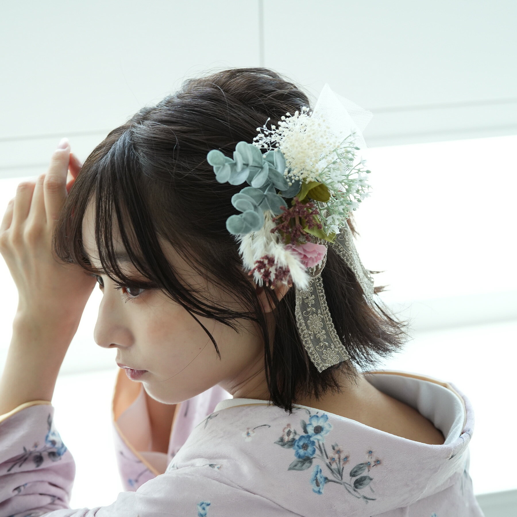 レディース 髪飾り ドライフラワー 10 - 20代 華やか 可愛い系ドライフラワー 髪飾り 30点セット 日本製 ヘアアクセサリー 無地 ボリューム セット 白系 ホワイト 金 ベージュ 青 緑 くすみカラー ナチュラル ヘアアクセ 結婚式 二次会 卒業式 謝恩会